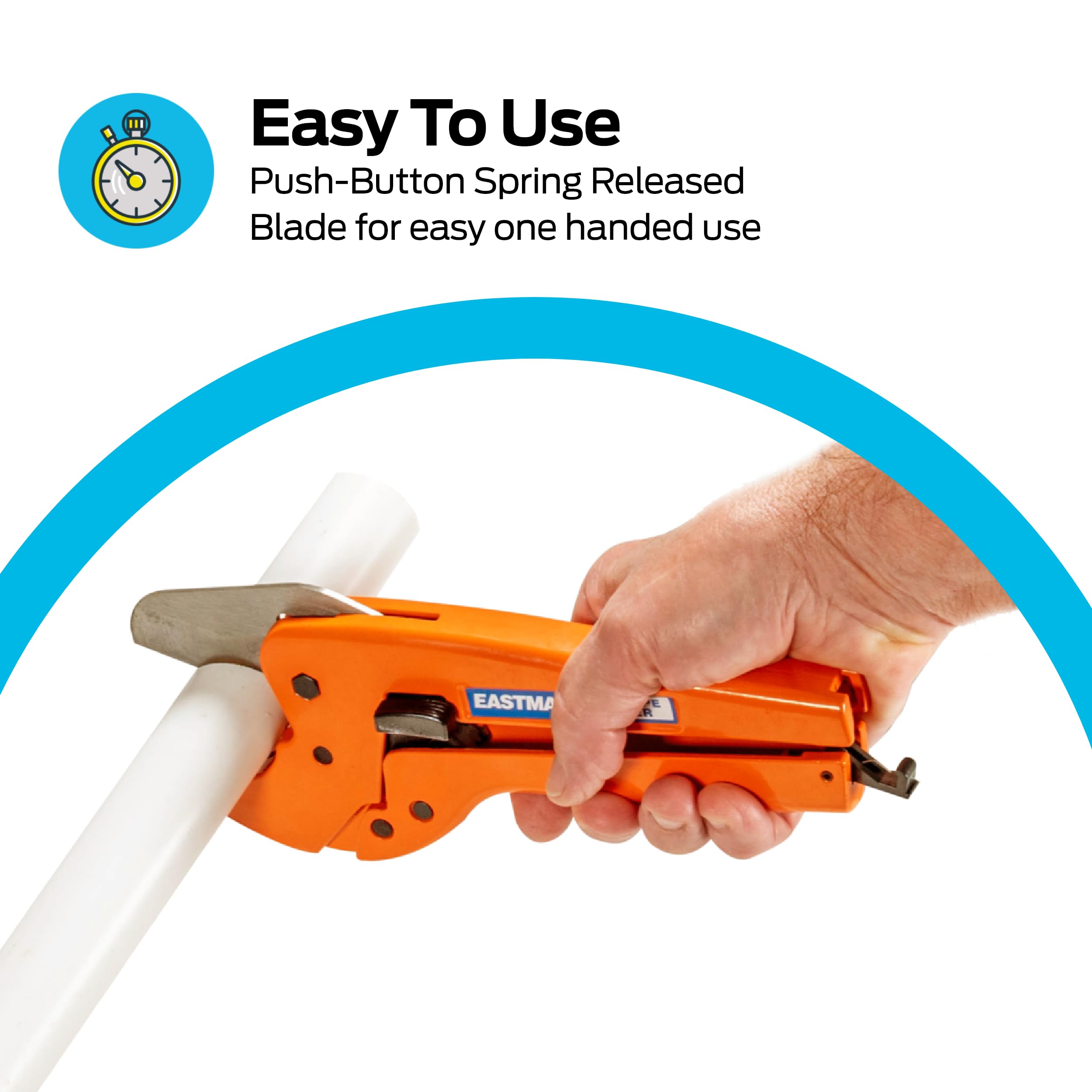 Eastman Heavy Duty PVC Pipe Cutter with Push-Button and Spring-Release Blade, Cuts 1/2 to 1-1/14 Inch Pipe, Professional Tool for PVC, PEX, CPVC, and PE Pipes, Orange, 45132